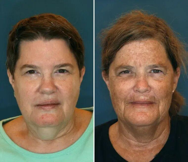 左图是迪娜,她的日晒时间默契多于右图的吉娜。迪娜的肤质嗅觉要差少许,但日晒形成的毁伤还莫得未全齐浮现出来(还有一个原因,迪娜更瘦,下颌线了了、颧骨有立体感,显得边幅年青)。