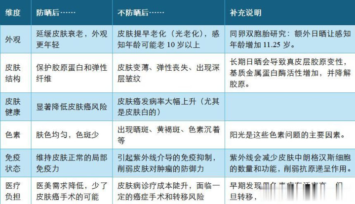为了让各人更直不雅地伙同防晒的强横,咱们蚁合了多项医学接头,整理了一个表格。