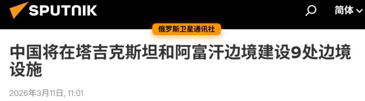 1.俄罗斯卫星通信社-2026-03-11——《中国将在塔吉克斯坦和阿富汗边境开辟9处边境步伐》