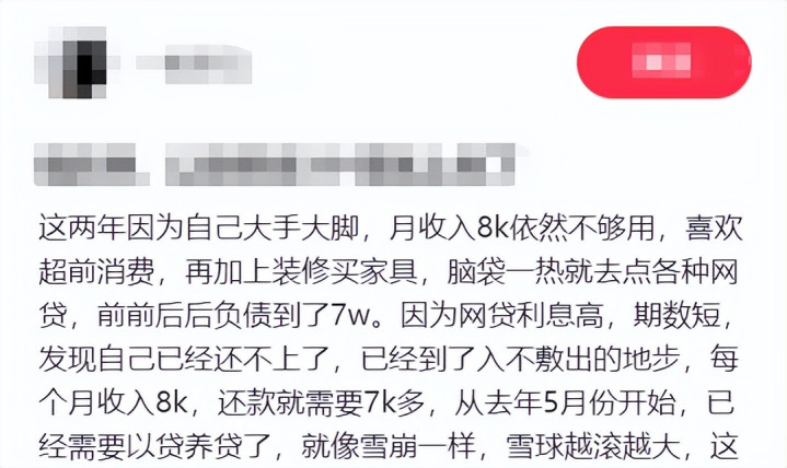 还有一个朋友,每月税后月入8000多却依旧觉得不够用,又喜欢超前消费,再加上装修买家具,所以是各大网贷平台的常客,前前后后负债到了7万。
