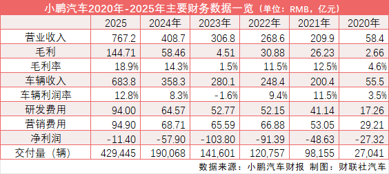财报夸耀,2025年小鹏汽车实现营业收入767.2亿元,较2024年的408.7亿元同比增长87.7%。分季度来看,全年营收呈现逐季稳步攀升态势,季度环比增长率守护在9%-16%区间。