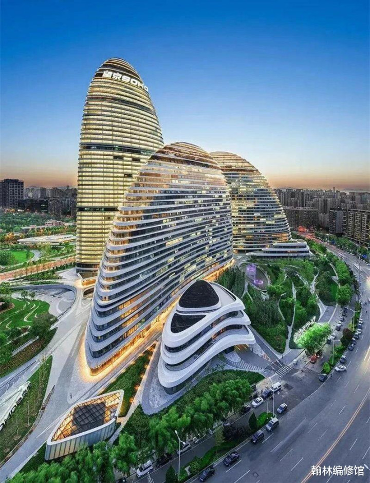 望京SOHO优美的曲线,在夕阳下投射出漫长的影子。