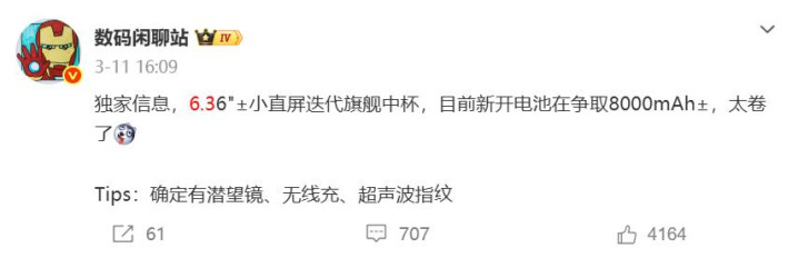 之前博主数码闲说念站爆料过荣耀迭代中杯旗舰,预测荣耀magic 9中杯就会径直作念成6.3英寸小直屏,不是超薄蓄意而是旧例小直屏蓄意,厚度提上来就能把建树作念得更满。