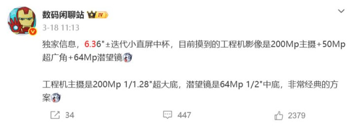 影像上也赢得了爆料,将会接受2亿像素录像头+5000万像素超广角录像头+6400万像素潜望式长焦录像头,主摄的传感器是1/1.28英寸大底,拍照明晰度应该可以,也粉饰多焦段并接济潜望式拍摄。